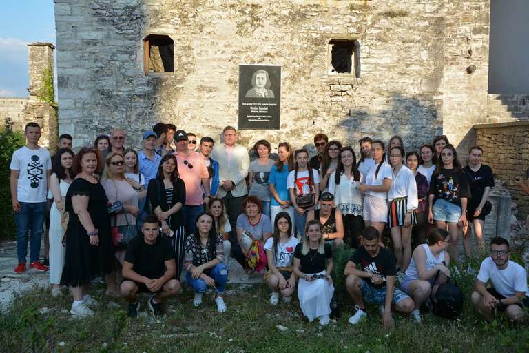 This year, on the second day of the study visit, 40 high school students from Tirana, Elbasan, Kukës, Shijak, Peqin, Rreshen etc. had the opportunity to visit the Tepelena’s internment camp, the Gjirokastra Castle former political prison and the house of Musine Kokalari. The group with young people and history teachers visited the internment camp in Tepelena and listened to Simon Mirakaj as he told his story of persecution in this place.