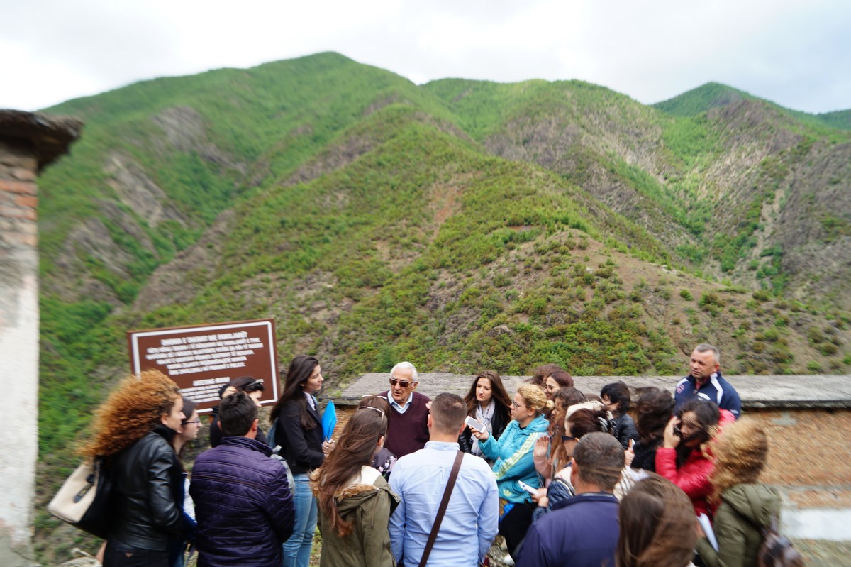 Students started to reflect about this study trip since on the way to the former prison area. The road seemed endless. Upon arriving in the prison area, Gjet(o) Vocaj started to share his experience in the prison. Students were very eager to hear about his experience and did not stop questioning Mr. Vocaj about his experience in prison, who among other things shared the effect of Spaç revolt in 1973. He told to the students how people were executed for the revolt, others were tortured and their punishment doubled.